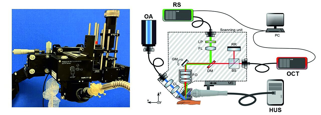Genau hier setzt das Verbundvorhaben Target-H an: Es verfolgt das Ziel, verschiedene hochinnovative bildgebende Technologien – darunter optoakustische Verfahren, Raman-Spektroskopie, optische Kohärenztomographie und hochauflösenden Ultraschall – in einer einzigen Messeinheit zu kombinieren, das physiologische und biochemische Gewebemerkmale visuell differenzierbar macht.